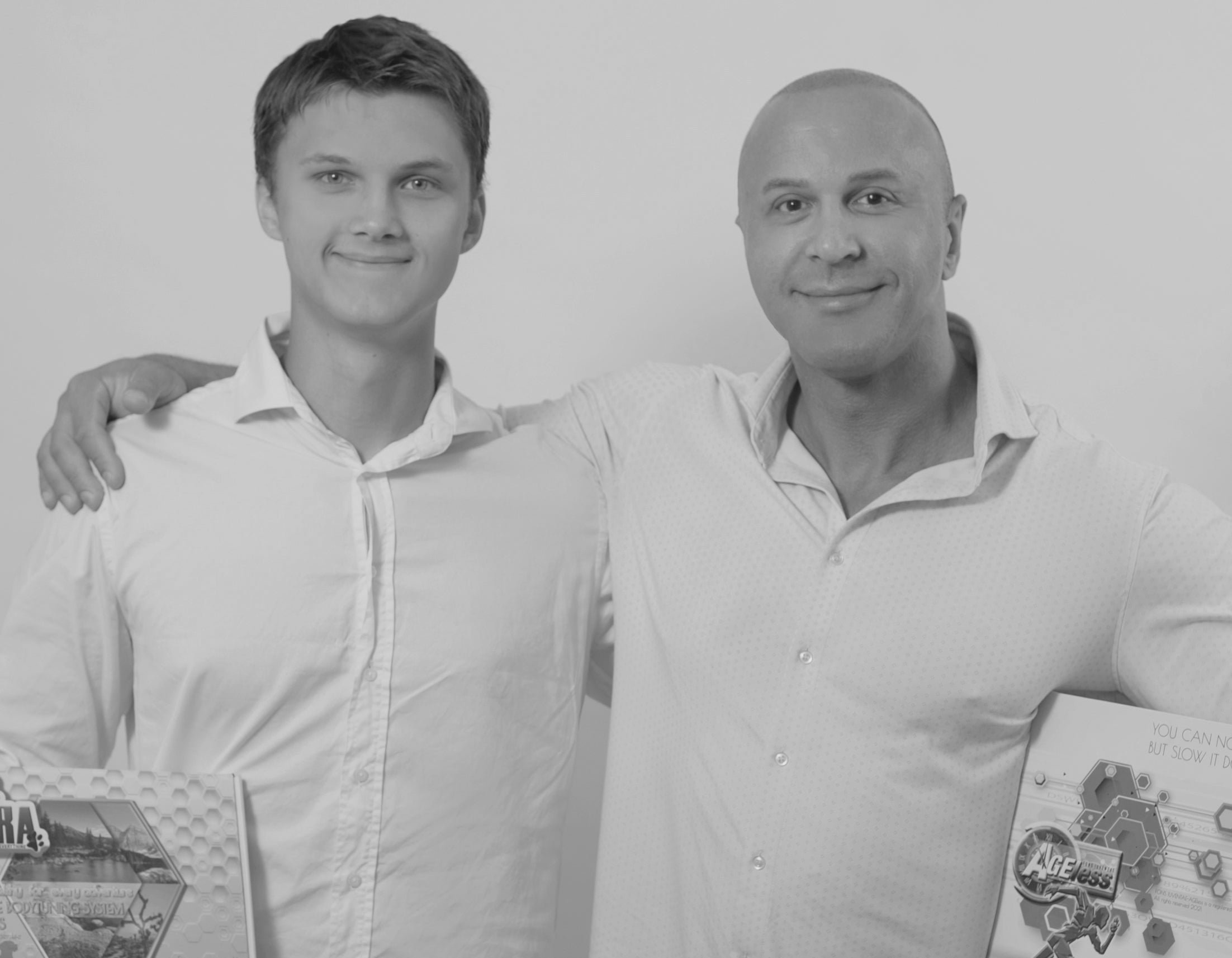 Mein Name ist Lukas Lenhart und links neben mir ist mein Sohn Alexander "der Blonde". Mein Lebensplan war es eigentlich Profiwrestler zu werden doch durch eine Verletzung die mich vorruebergehend in den Rollstuhl zwang, aenderte ich meine Einstellung zum Leben und es fuehrte mich zu meiner wahren Bestimmung. Seit meinem 9 Lebensjahr betreibe ich Bodybuilding, davon 10 Jahre Wettkampfbodybuilding. Ich startete meine Selbststaendigkeit und das erste "AGEless Produkt" im Jahre 2010 und musste viele Rueckschlaege einstecken. Im Jahr 2022 entschied sich mein Sohn dazu mit mir meine Vision von der Marke AKIRA ins Leben zu rufen und ist seit dem aktiv an der Produktentwicklung der AKIRA Serie und als Geschaeftspartner beteiligt. Er ist zu dem leidenschaftlicher Musiker mit seiner Band "Woke".